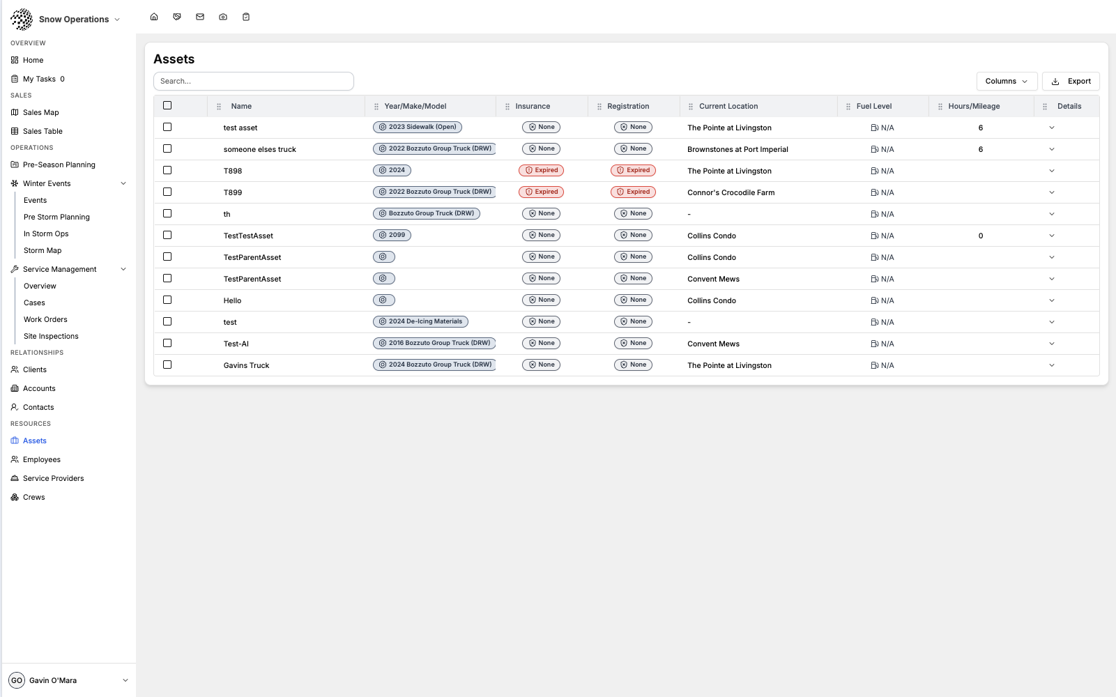 Track vehicles, plows, spreaders, and other equipment — including maintenance schedules and availability.