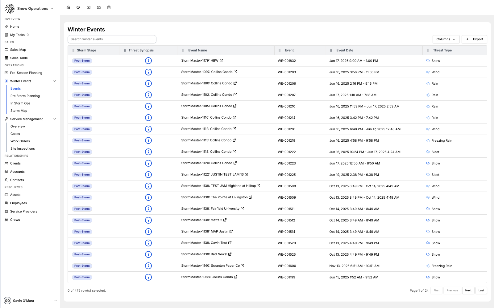 Live crew tracking, push-to-talk communication, and real-time status updates during active storm events.